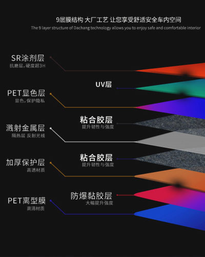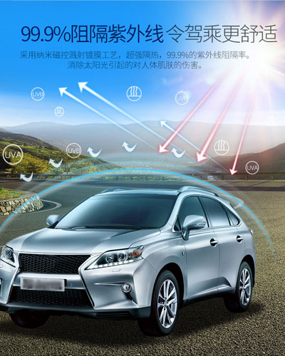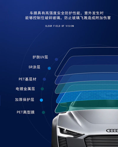 酷佳迪汽车原色防爆膜采用真空磁控溅射技术,来组合不同的金属、绝缘材料和半导体,如玻璃一样在一个很大的真空室、压力很低的惰性气体环境中及电能作用下,各种金属被带电离子撞击,造成金属原子成为自由粒子沉淀在聚酯膜表面。形成了膜的各种各样独特的稳定色彩、高层次透光率选择性以及最佳的阳光控制性能。